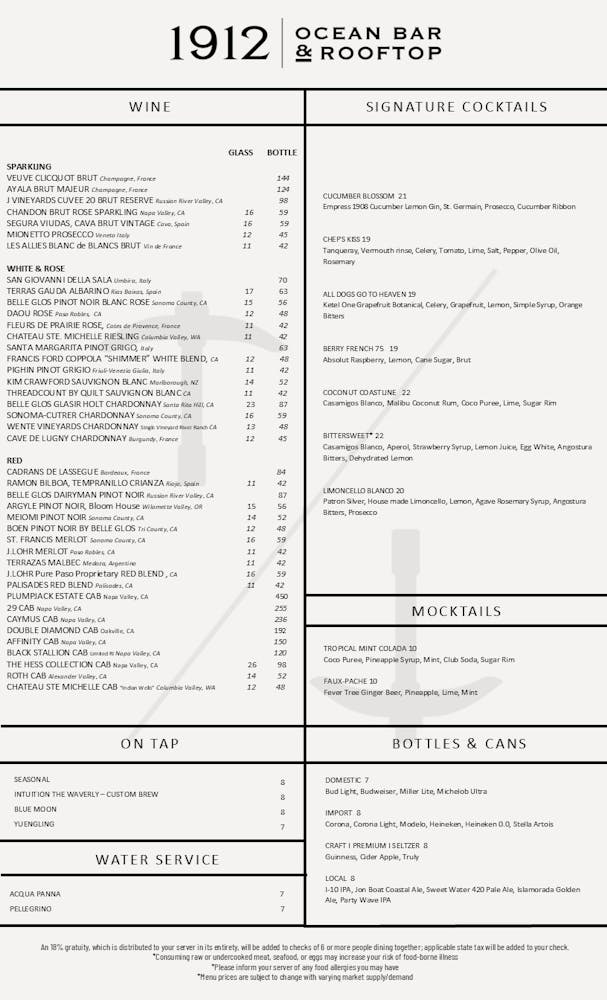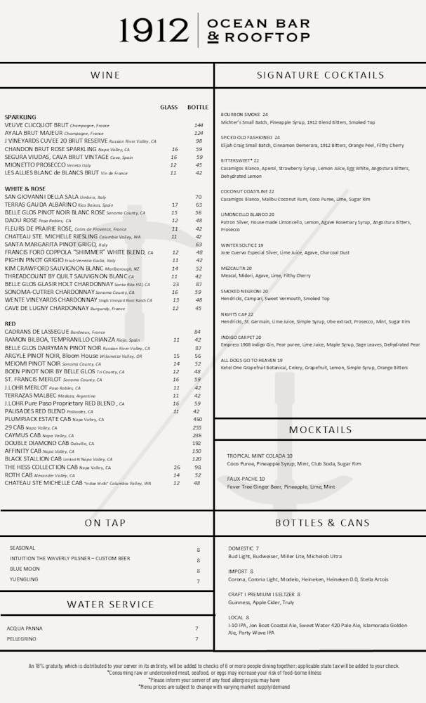 An 18% gratuity, which is distributed to your server in its entirety, will be added to checks of 6 or more people dining together; applicable state tax will be added to your check